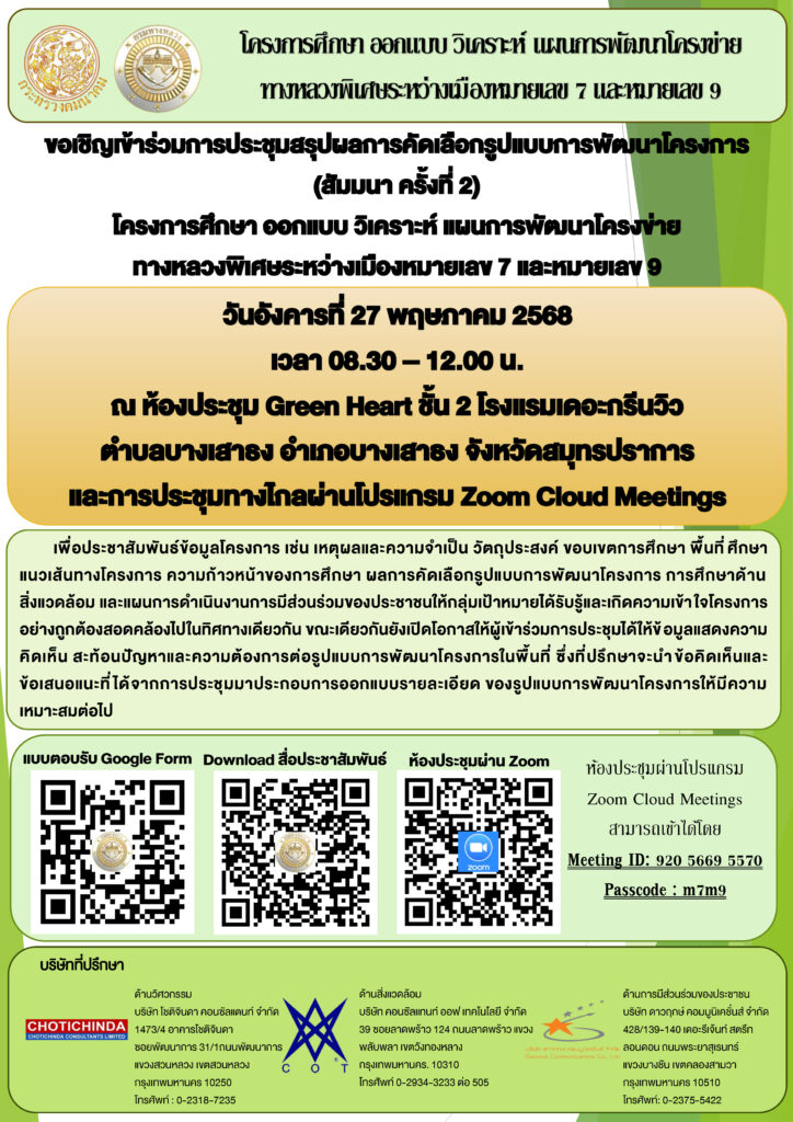 ประกาศกรมทางหลวง เรื่อง ขอเชิญชวนเข้าร่วมการประชุมสรุปผลการคัดเลือกรูปแบบการพัฒนาโครงการ (สัมมนา ครั้งที่ 2)