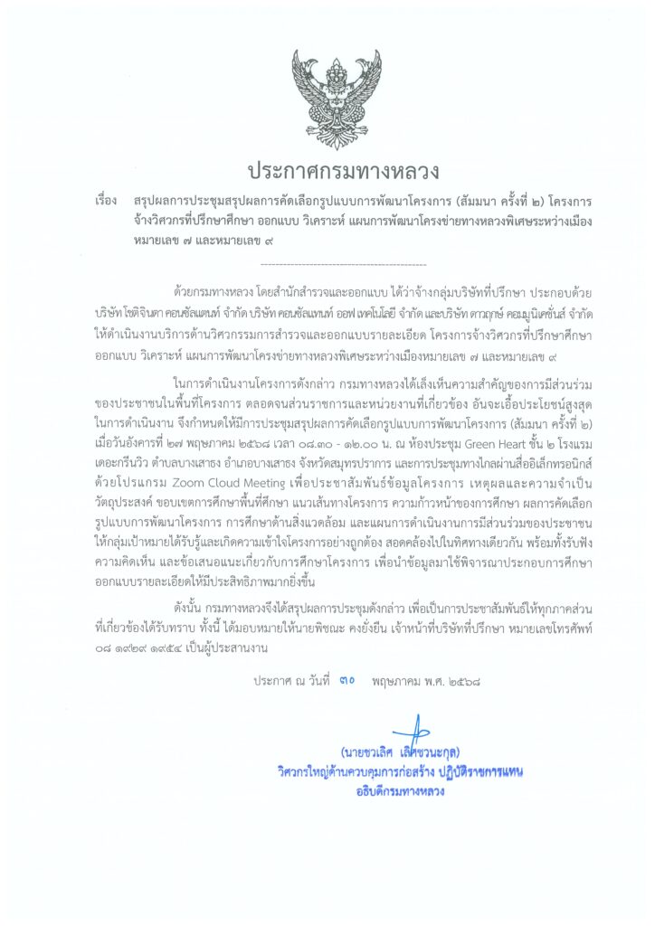 ประกาศสรุปผลการประชุมสรุปผลการคัดเลือกรูปแบบการพัฒนาโครงการ (สัมมนา ครั้งที่ 2)
