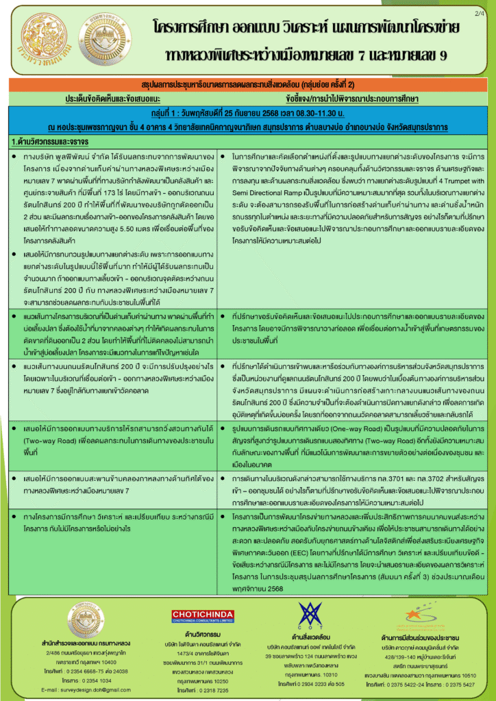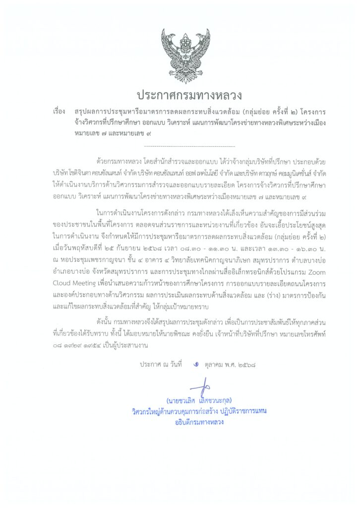 ประกาศสรุปผลการประชุมหารือมาตรการลดผลกระทบสิ่งแวดล้อม (กลุ่มย่อย ครั้งที่ 2)