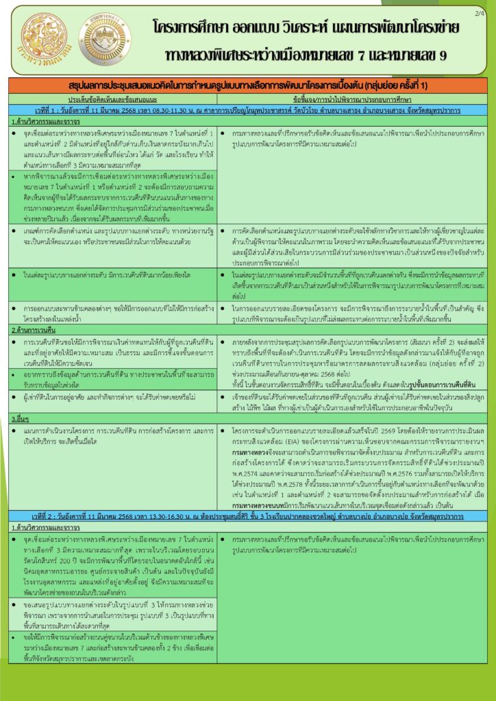 ประกาศสรุปผลการประชุมเสนอแนวคิดในการกำหนดรูปแบบทางเลือกการพัฒนาโครงการเบื้องต้น (กลุ่มย่อย ครั้งที่ 1)