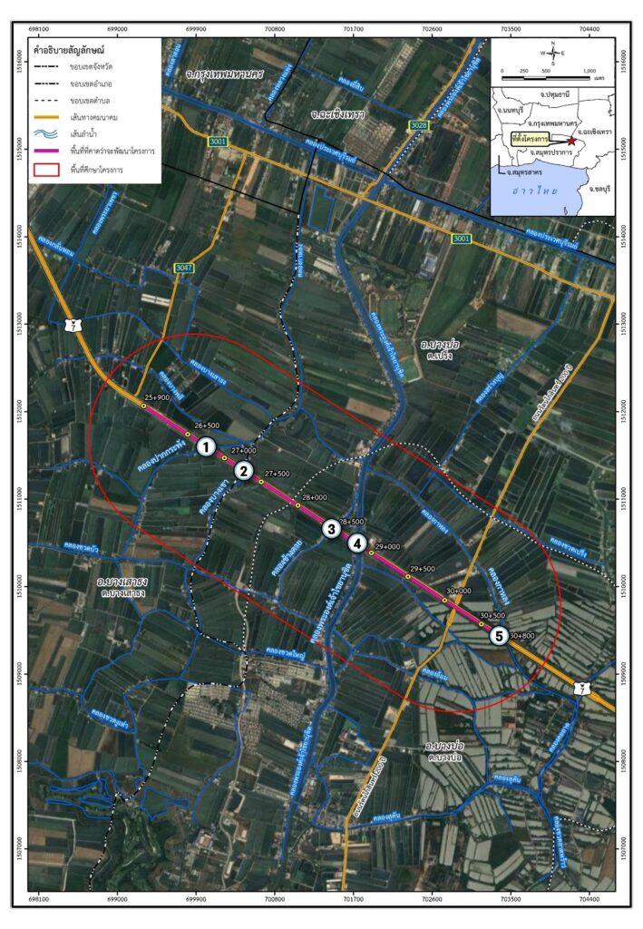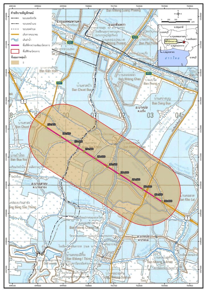 ทั้งนี้ พื้นที่โครงการตั้งอยู่ที่สมุทรปราการ ไม่ได้จัดอยู่บริเวณพื้นที่ชุ่มน้ำดังกล่าวข้างต้น โดยพื้นที่ชุ่มน้ำที่มีความสำคัญระหว่างประเทศที่อยู่ใกล้พื้นที่โครงการมากที่สุด คือ ดอนหอยหลอด ซึ่งมีระยะห่างจากโครงการประมาณ 95 กิโลเมตร โดยที่ปรึกษาจะดำเนินการตรวจสอบพื้นที่ชุ่มน้ำต่อกรมทรัพยากรน้ำให้มีความชัดเจนครบถ้วนสมบูรณ์ต่อไป